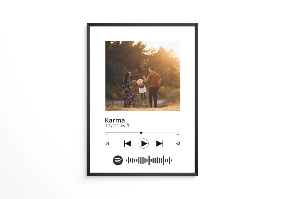 Vous êtes à la recherche d’un cadeau original et personnalisé pour surprendre vos proches ? L’affiche personnalisée style Spotify est le choix parfait ! Créez un moment inoubliable en transformant vos plus beaux souvenirs en une affiche au design inspiré de votre musique. Que ce soit pour un mariage, un anniversaire, ou tout simplement pour immortaliser un moment précieux, ce cadre personnalisé est à la fois élégant, amusant et original.